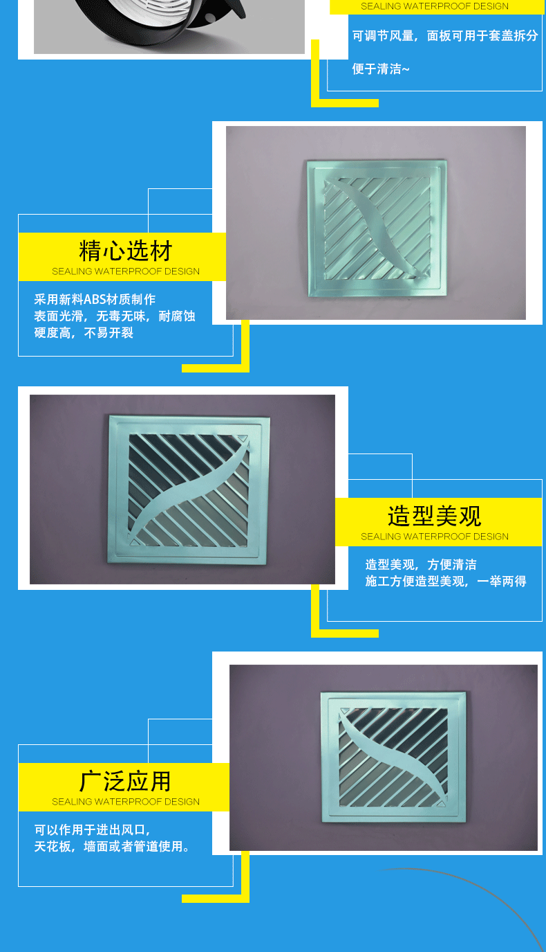 制作:風(fēng)口做成加厚型(外框1.0mm,葉片0.8mm);一般制作都是加厚型的,要薄型的可以跟客服聯(lián)系;也可烤兩遍漆,顏色可按客戶要求進(jìn)行烤制(價(jià)格另計(jì),量大從優(yōu))
